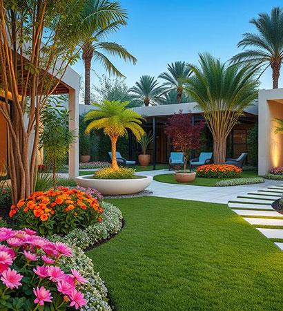 نحن نؤمن أن الحديقة ليست مجرد مساحة خضراء، بل هي مساحة للراحة والجمال والرفاهية، لذلك نحرص على تقديم حلول متكاملة تجمع بين الإبداع في التصميم، الجودة في التنفيذ، والاستدامة في الصيانة