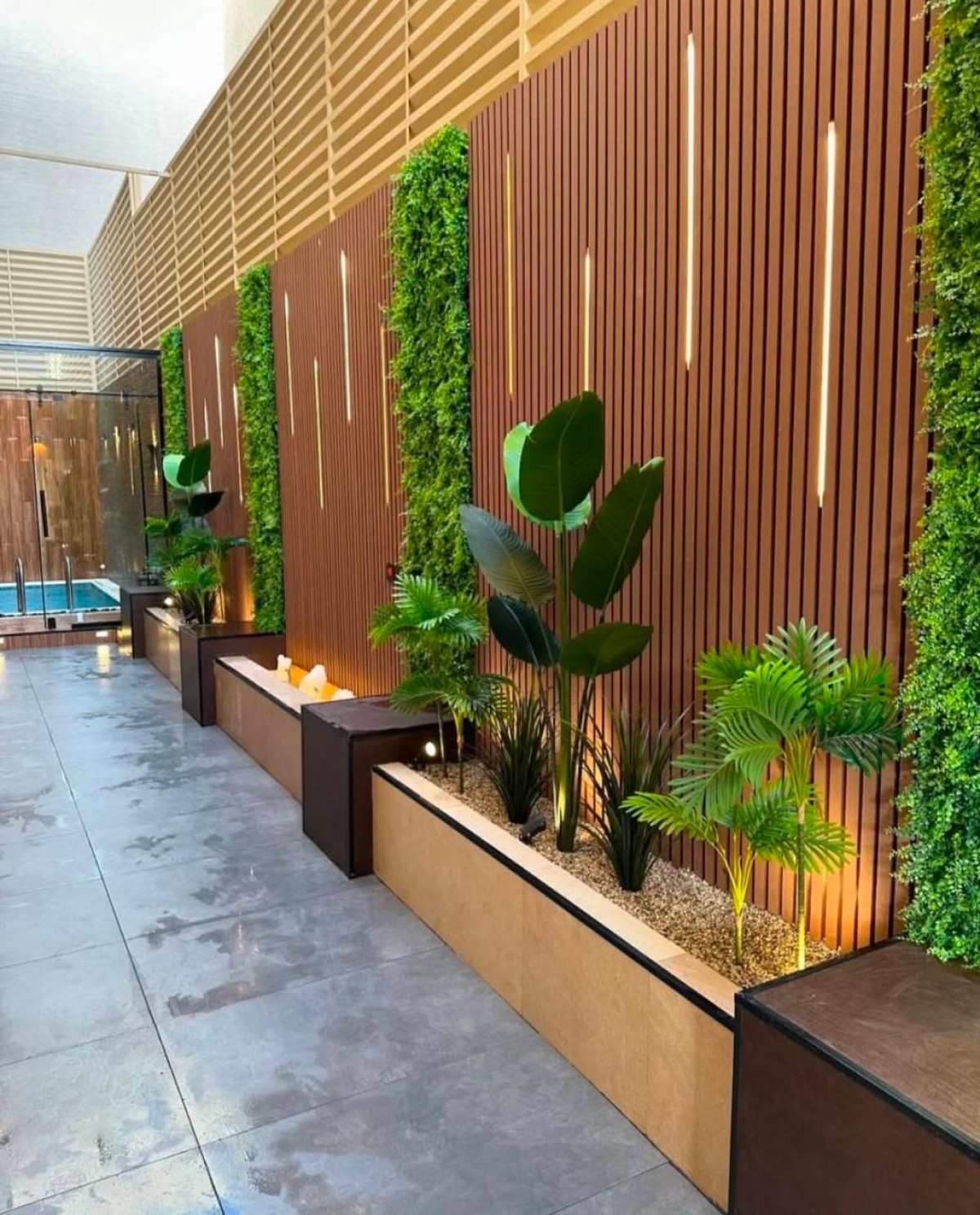 • أحواض خشبية: تتميز بمظهرها الطبيعي والأنيق، وتضفي طابعًا دافئًا على الحديقة، كما يمكن طلاؤها بألوان متعددة لتناسب الديكور.